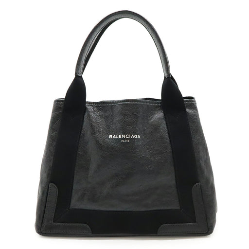 BALENCIAGA Navy Cabas S Logo Handbag Tote Bag Leather Black 339933 [Used]