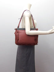 Intrecciato Shoulder Bag Tote Bag Leather Bordeaux Gunmetal Metal Fittings Open Opening and Closure Shoulder Braided Women
