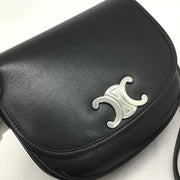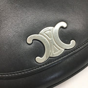 CELINE Medium Buzas Triomphe Shoulder Bag Leather Black Silver Hardware Women's