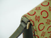 Genuine CELINE C Macadam Accessory Pouch Handbag Canvas Khaki Red Macadam Bag