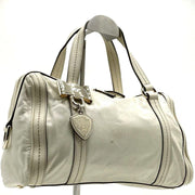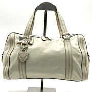 GUCCI Duchessa Mini Boston Handbag Leather Ribbon Crest White