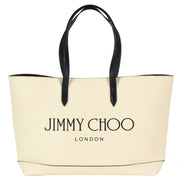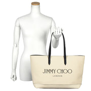 Jimmy Choo JIMMY CHOO Tote Bag Canvas Leather Ivory Black Logo A4 Available