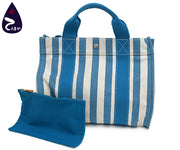 [Quality Shop Tenmaya] [Good condition] Hermes Canvas: Blue x White Cannes PM