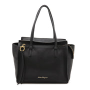 Salvatore Ferragamo Amy Gancini Tote Bag Shoulder Bag Leather Black Gold