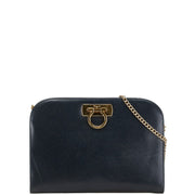 Salvatore Ferragamo Gancini Chain Crossbody Shoulder Bag P21 0587 Navy Leather