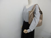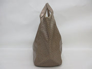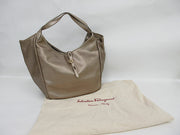 Salvatore Ferragamo Gancini Punched Shoulder Tote Bag Champagne Gold Leather