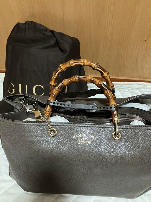 詳細を全部見るCalf leather handbag with bamboo handle.You can also hold the shoulder strap.This seasonLarger ones are also popular.Black or brown fashionIt's a c...