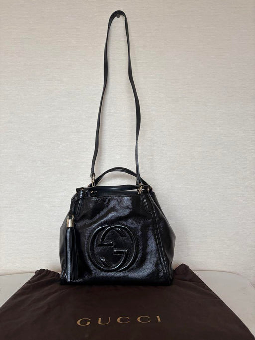 詳細を全部見る#GUCCI Bag #Soho[Product Details][Size] W34cm H29cm D16cm(Amateur measurements)[Material] Patent leather[Color] BlackI'll also include a bagI didn'...