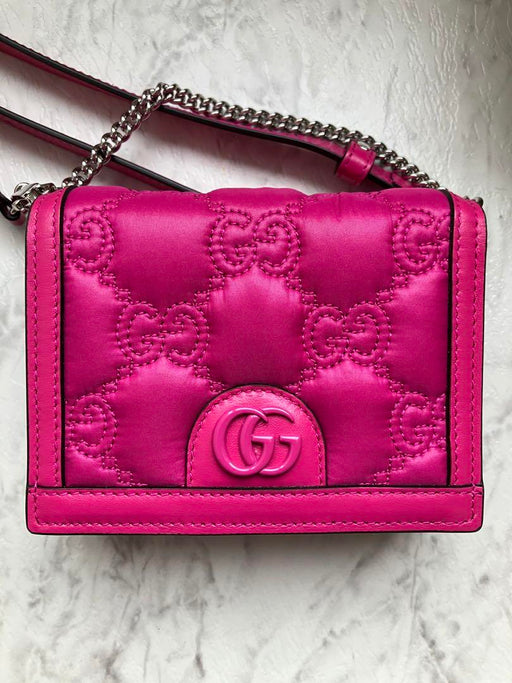 詳細を全部見るLimited time price100% authenticGUCCI GG Quilted Mini Bag Pink LeatherStorage bag, box, strap x 2Size: Width: Approx. 13cm Height: Approx. 10cm Gus...