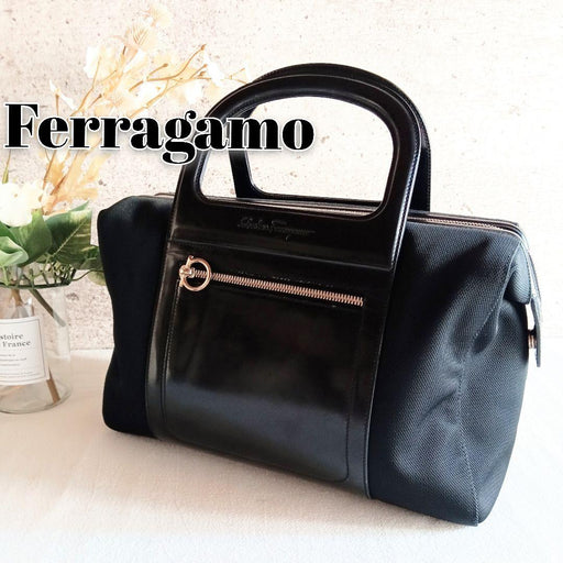 詳細を全部見る[Genuine product guarantee] This is an authenticated product★[Product] Salvatore Ferragamo Gancini Vintage Nylon Canvas Genuine Leather Large Capac...