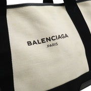 BALENCIAGA Navy Cabas S Logo Tote Bag Handbag Canvas Leather Natural Black With