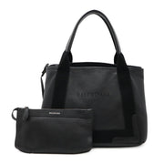 BALENCIAGA Navy Cabas S Tote Bag Handbag Punched Logo Leather Black with Pouch