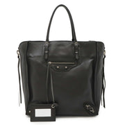 BALENCIAGA Paper A5 Zip Around Tote Bag Handbag Leather Grey with Mirror 357330